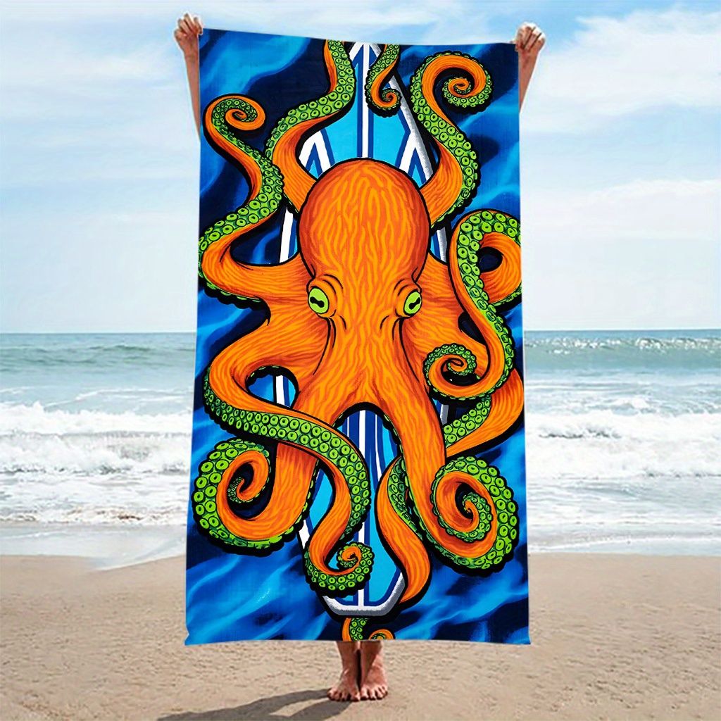 1pc Orange Octopus Beach Towels; Microfiber Oversized Beach Blanket; Super Absorbent Bath Towel; For Travel Swim Pool Diving Fitness Surfing Yoga Camp