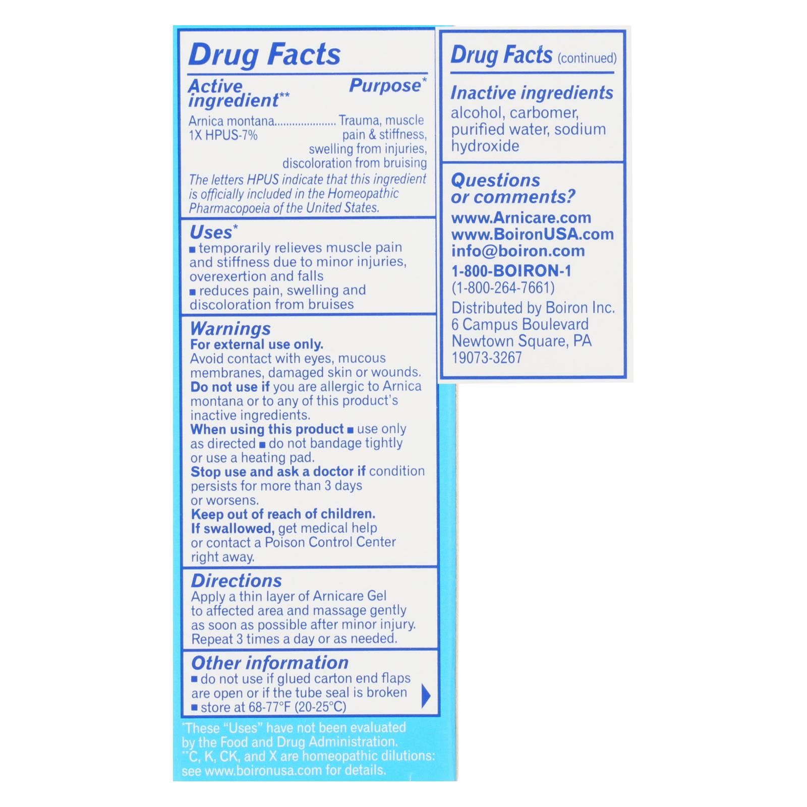 Boiron arnicare gel is a powerful medicinal gel designed to provide natural pain relief. Made with a minimal amount of natural ingredients, boiron arnicare gel is largely free from unnatural and unnecessary additives. This product is homeopathic. This unit of boiron arnicare gel weighs 1.5 oz. See label for warnings.