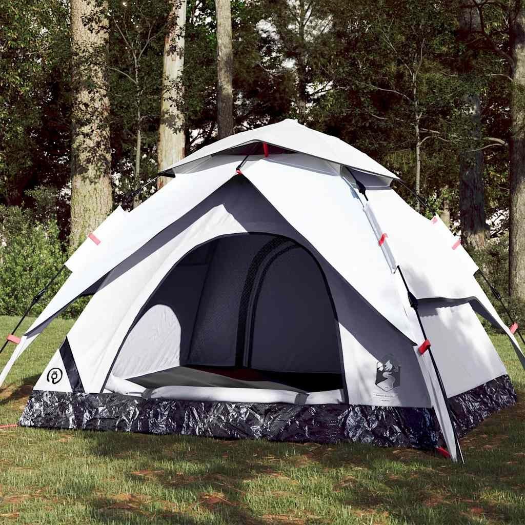 Camping Tent Dome 4-Person White Blackout Fabric Quick Release