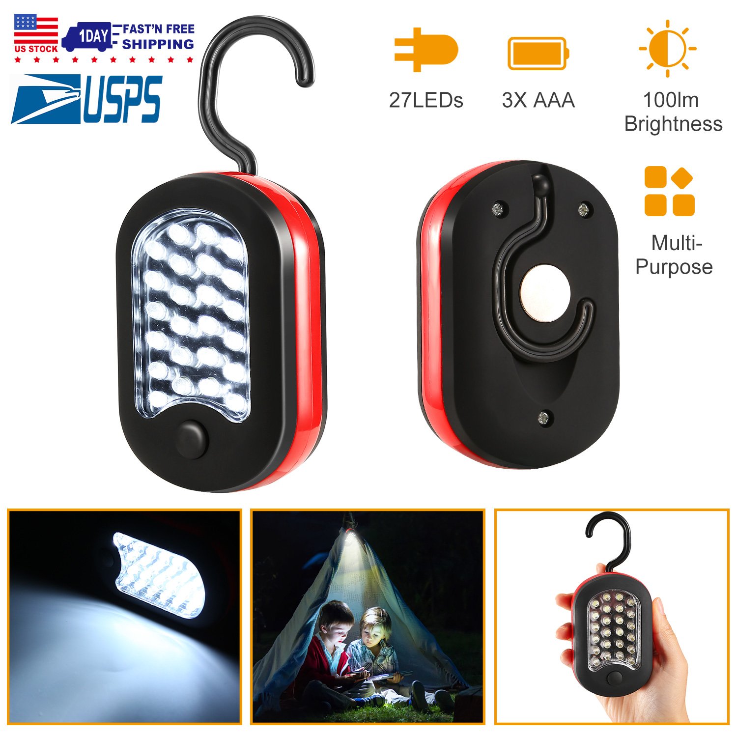 Compact Work Light 27LEDs Hang Lights Portable Magnetic Flashlight with Hook for Camping Hiking Emergency