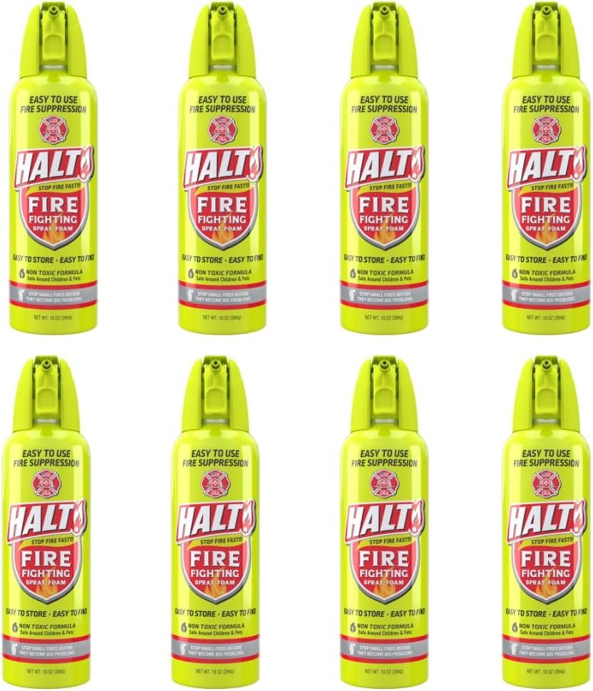 1.PEACE OF MIND: Protect your family and property by being prepared for any fire emergency with Halt! Designed specifically for home use, Halt acts quickly to extinguish small fires in seconds, making it far more convenient and effective than traditional Halt!. Compact, fast, and easy to use, this halt spray ensures that every home is a safer place.