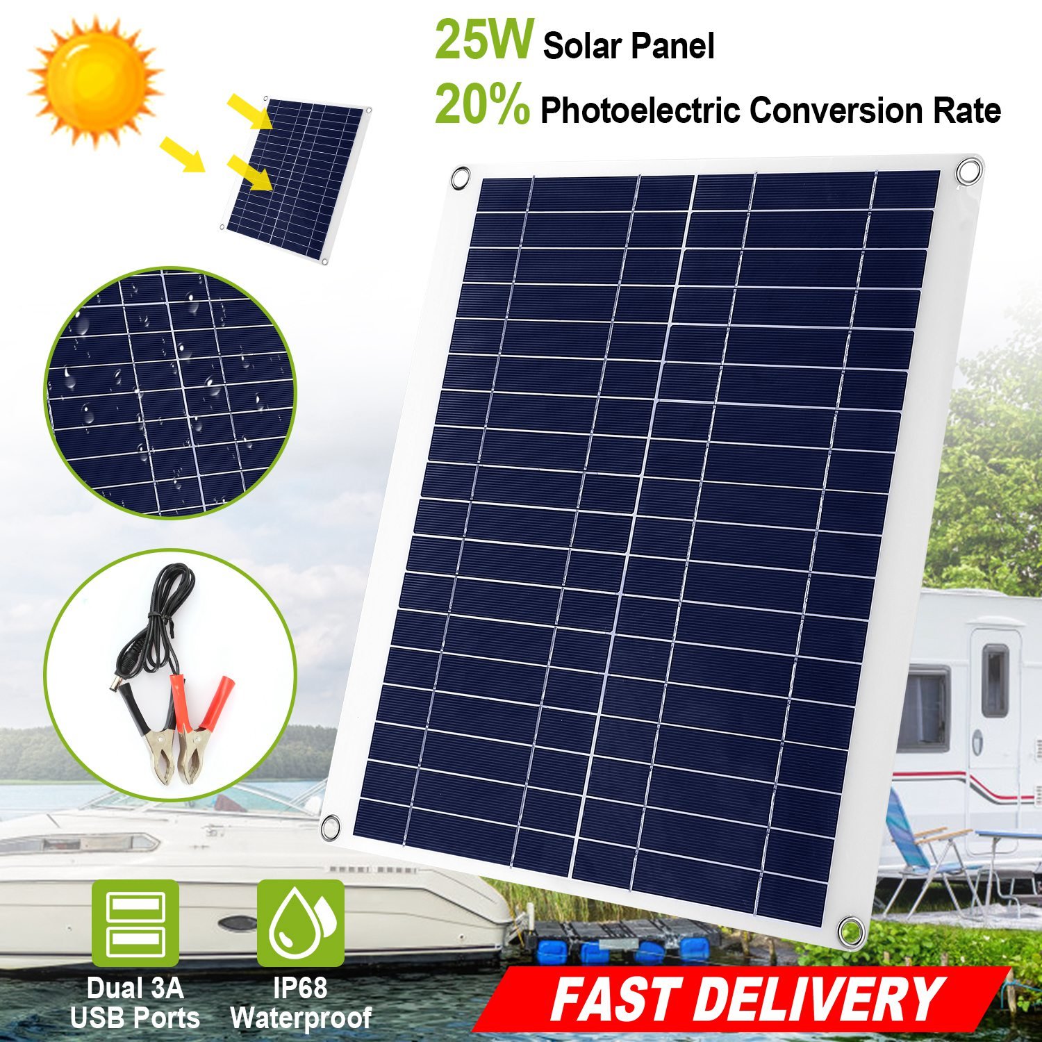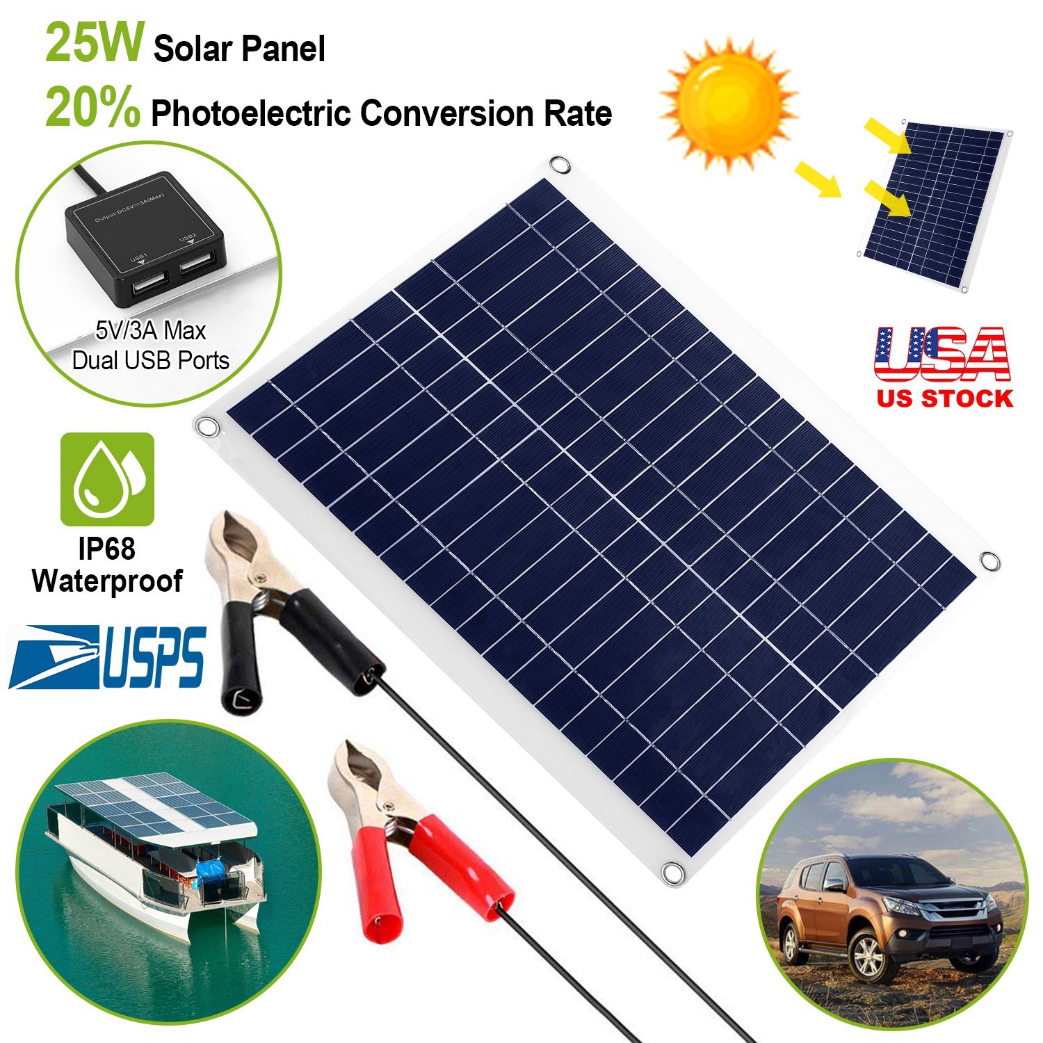 Outdoor Solar Panel 12V 25W Car Battery Charger IP68 Waterproof w/ 3.0A Dual USB Charging Clip Line For RV Car Boat Outdoor Solar Panel 12V 25W Car Battery Charger IP68 Waterproof w/ 3.0A Dual USB Charging Clip Line For RV Car Boat Outdoor Solar Panel 12V 25W Car Battery Charger IP68 Waterproof w/ 3.0A Dual USB Charging Clip Line For RV Car Boat Outdoor Solar Panel 12V 25W Car Battery Charger IP68 Waterproof w/ 3.0A Dual USB Charging Clip Line For RV Car Boat Outdoor Solar Panel 12V 25W Car Battery Charger IP68 Waterproof w/ 3.0A Dual USB Charging Clip Line For RV Car Boat