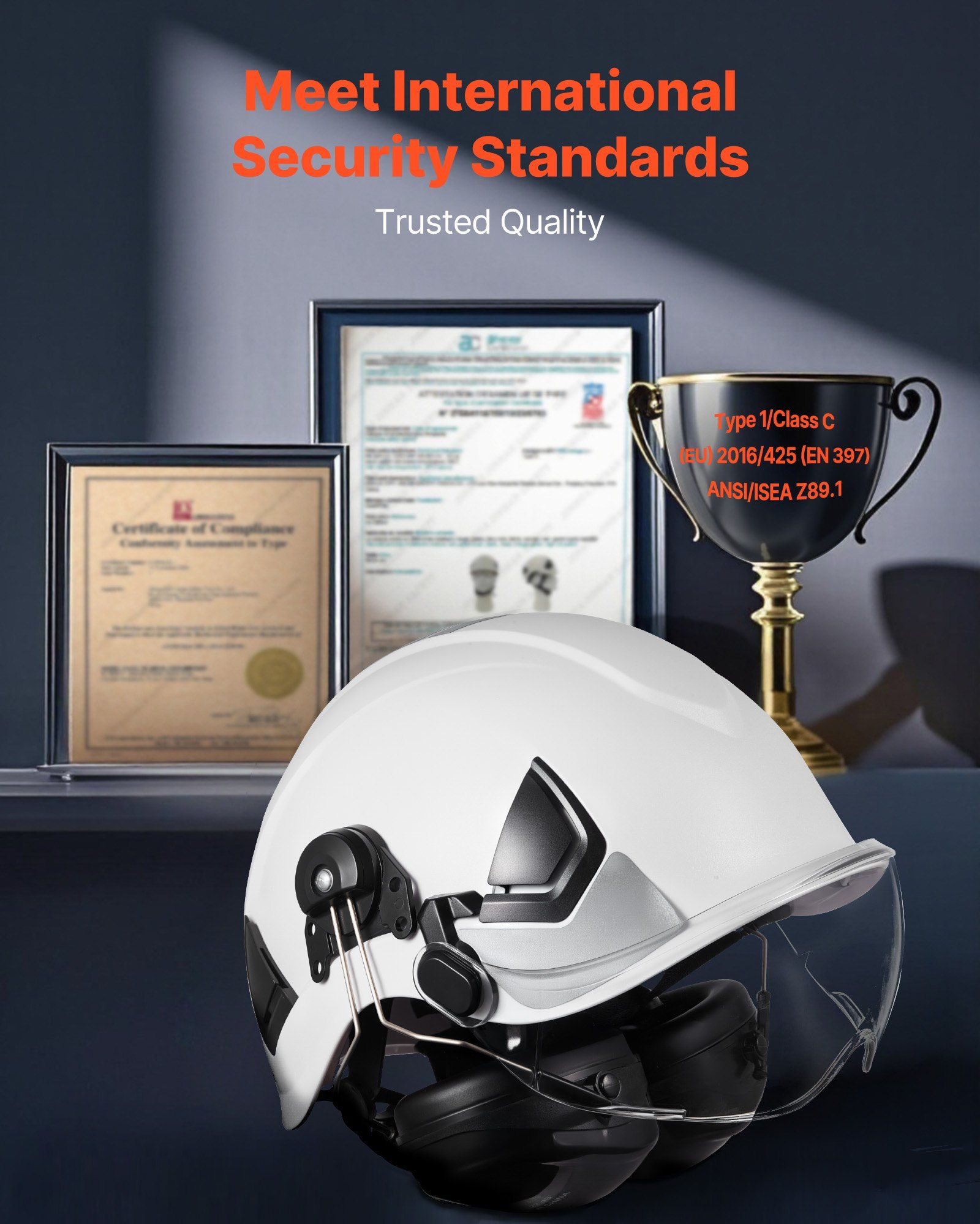 Industrial Safety Helmet with Visor and Earmuffs Adjustable Vented Hardhat Industrial Safety Helmet with Visor and Earmuffs Adjustable Vented Hardhat Industrial Safety Helmet with Visor and Earmuffs Adjustable Vented Hardhat