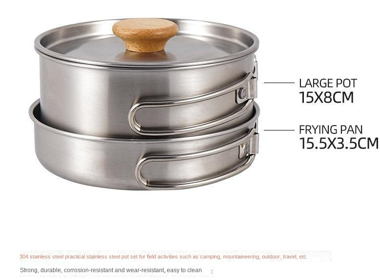 Outdoor hiking 304 stainless steel pot folding handle camping portable frying pan soup pot home picnic cookware set