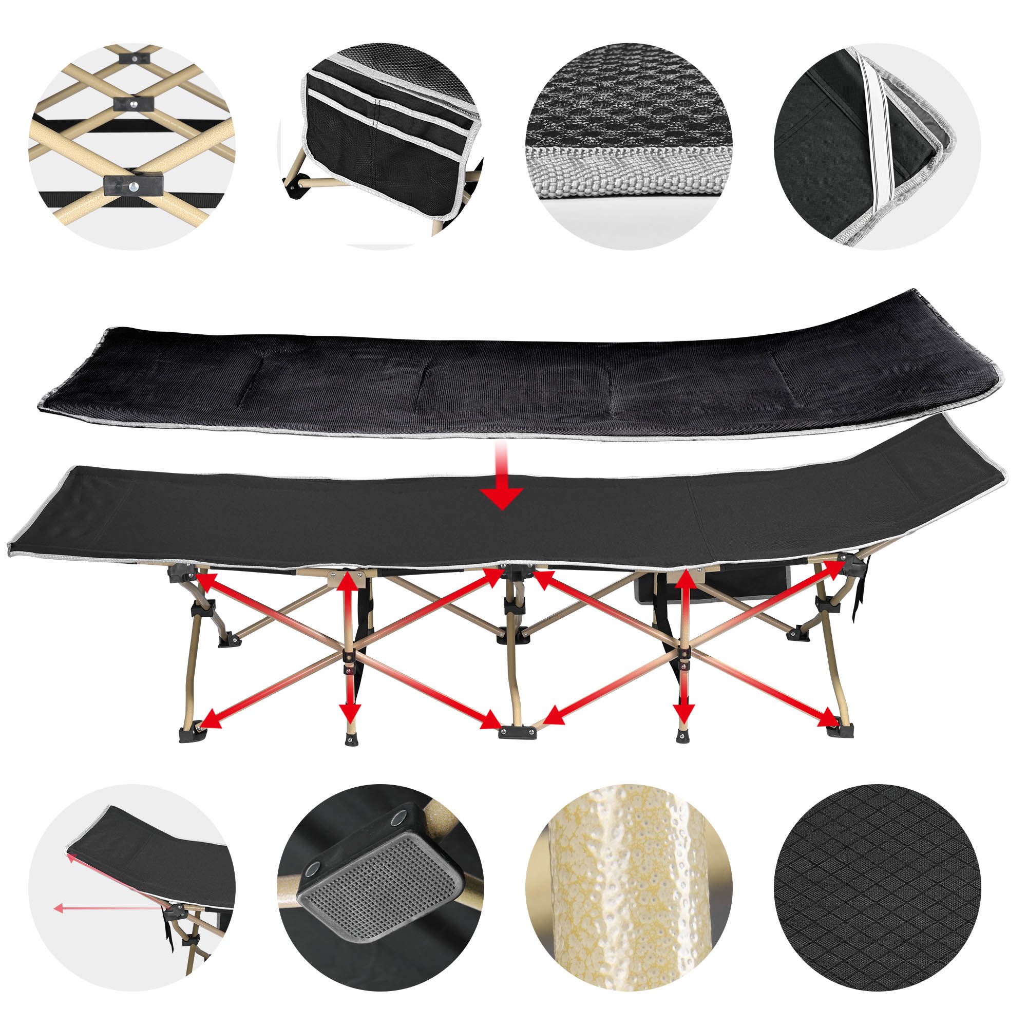 - Easy to Set up - No assembly required, simply unfold the cot in seconds to get a bed for resting, and fold it quickly after use for space-saving storage; Equipped with side pockets for holding your phone, tablet, magazine, flashlight and other essential belongings