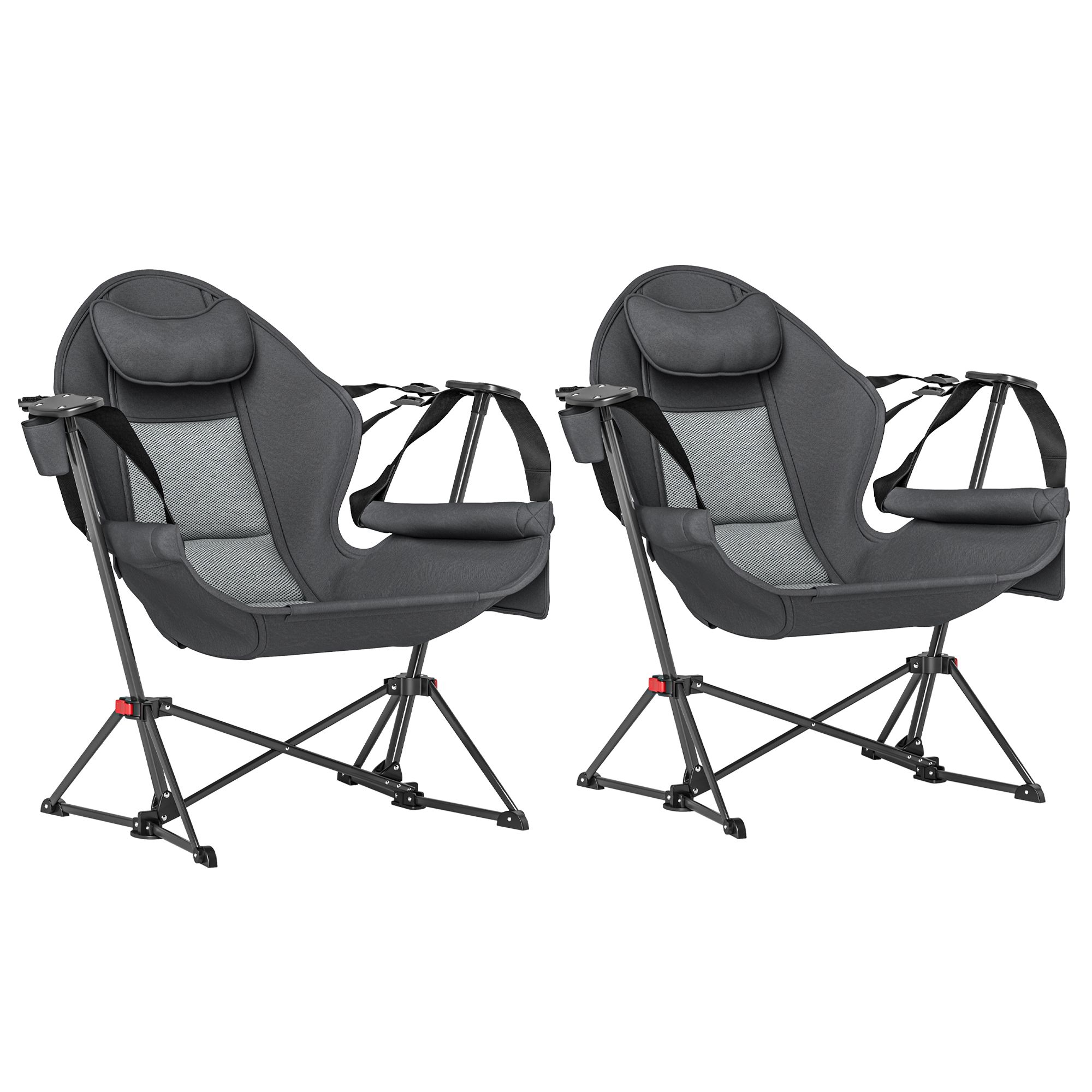 Discover the Outsunny hammock camp chair, a duo set that redefines relaxation! Adjust the back angle, sway from 90-168°, and soak in the comfort of the breathable, padded fabric. With a roomy seat and supportive high backrest, this swing camping chair combines luxury with the thrill of the outdoors, all in a foldable design for effortless adventure.