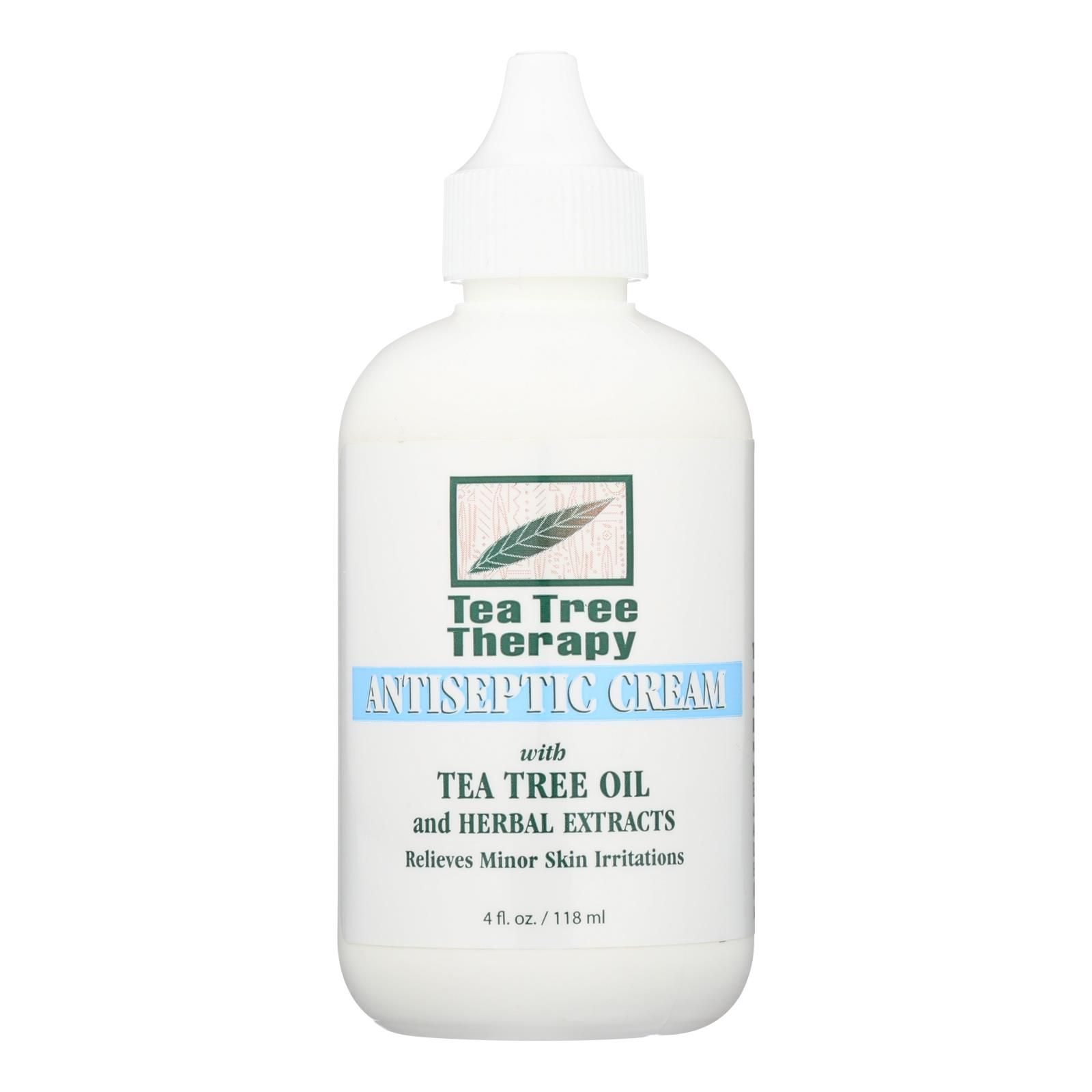 Tea tree therapy antiseptic cream with tea tree oil and herbal extracts is formulated to help soothe minor skin irritations. It features deionized water, tea tree leaf oil, aloe leaf juice, flower extracts and hydrolyzed wheat protein. Every 4 oz. Bottle of tea tree therapy antiseptic cream is made in the u.s.a.